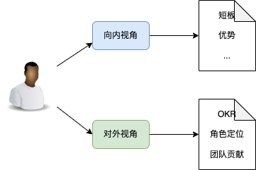 向内:主要是站在自身角度,反思个人成长,是对个人职业生涯长期的一个审视,属于查漏补缺,要求自我成长,认清自我定位的一种重要手段;